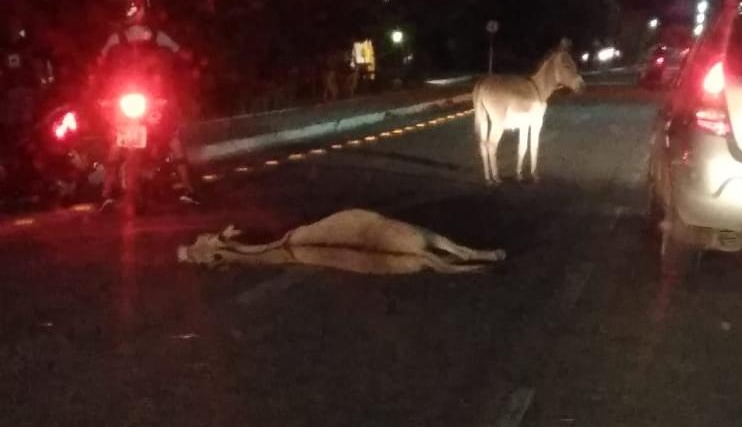 Motociclista colide contra Jumento, na avenida São Sebastião em Parnaiba
