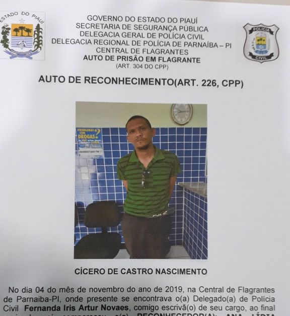 Patrulha da Força Tática de Parnaíba coordenada pelo tenente Paulo Roberto - prendeu nesta manhã de segunda-feira(4), o nacional CÍCERO DE CASTRO NASCIMENTO, residente no bairro Chafariz em Parnaíba, acusado de roubo e uma tentativa do mesmo crime.